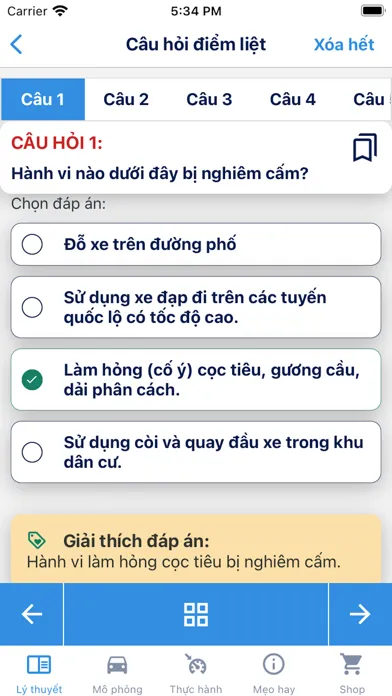 * Hỗ trợ ôn thi tình huống mô phỏng lái xe ô tô ngay trong cùng 1 ứng dụng.