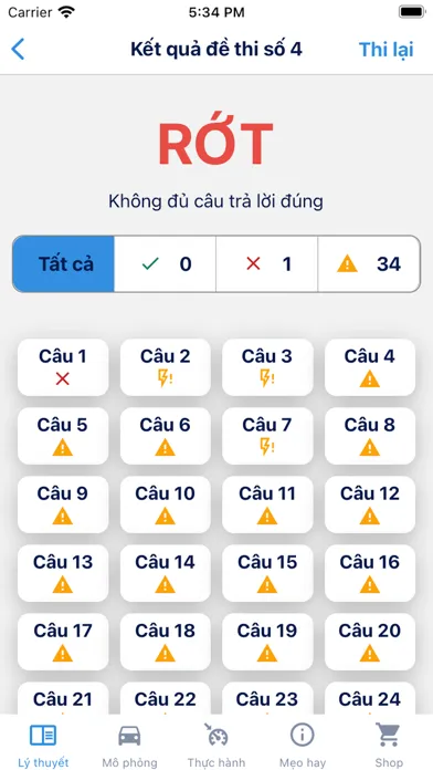 - Danh sách các câu hỏi đã làm sai giúp nhanh chóng ôn lại phần lý thuyết.
