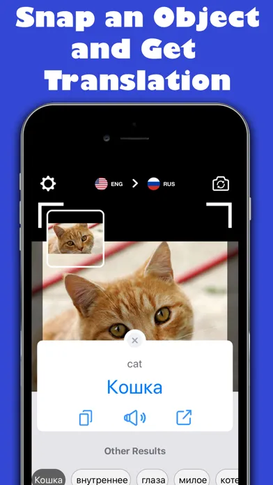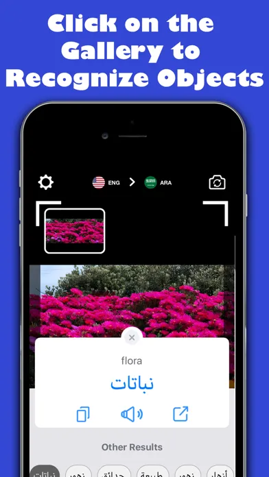 Take a photo or choose from your gallery. The app will recognize the objects and translate them into any language.