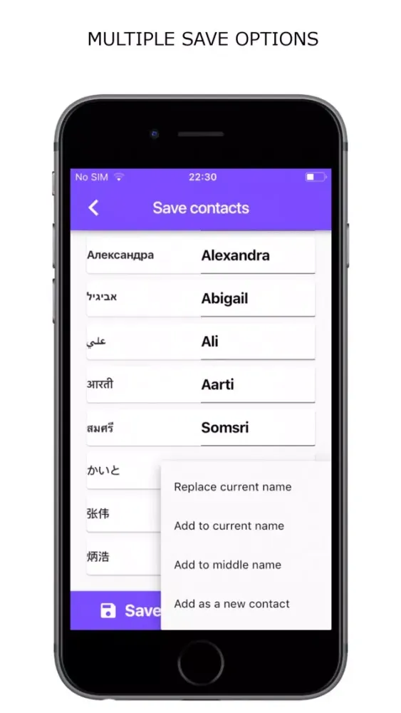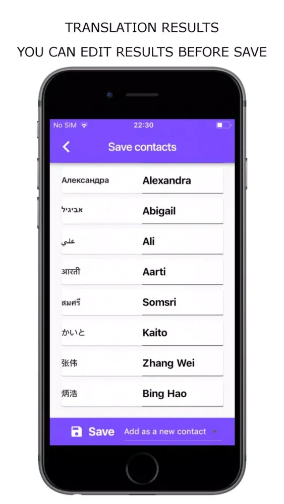 The app is designed in a way that gives you the easiest but most cautious way to save the translated contact names on your device.