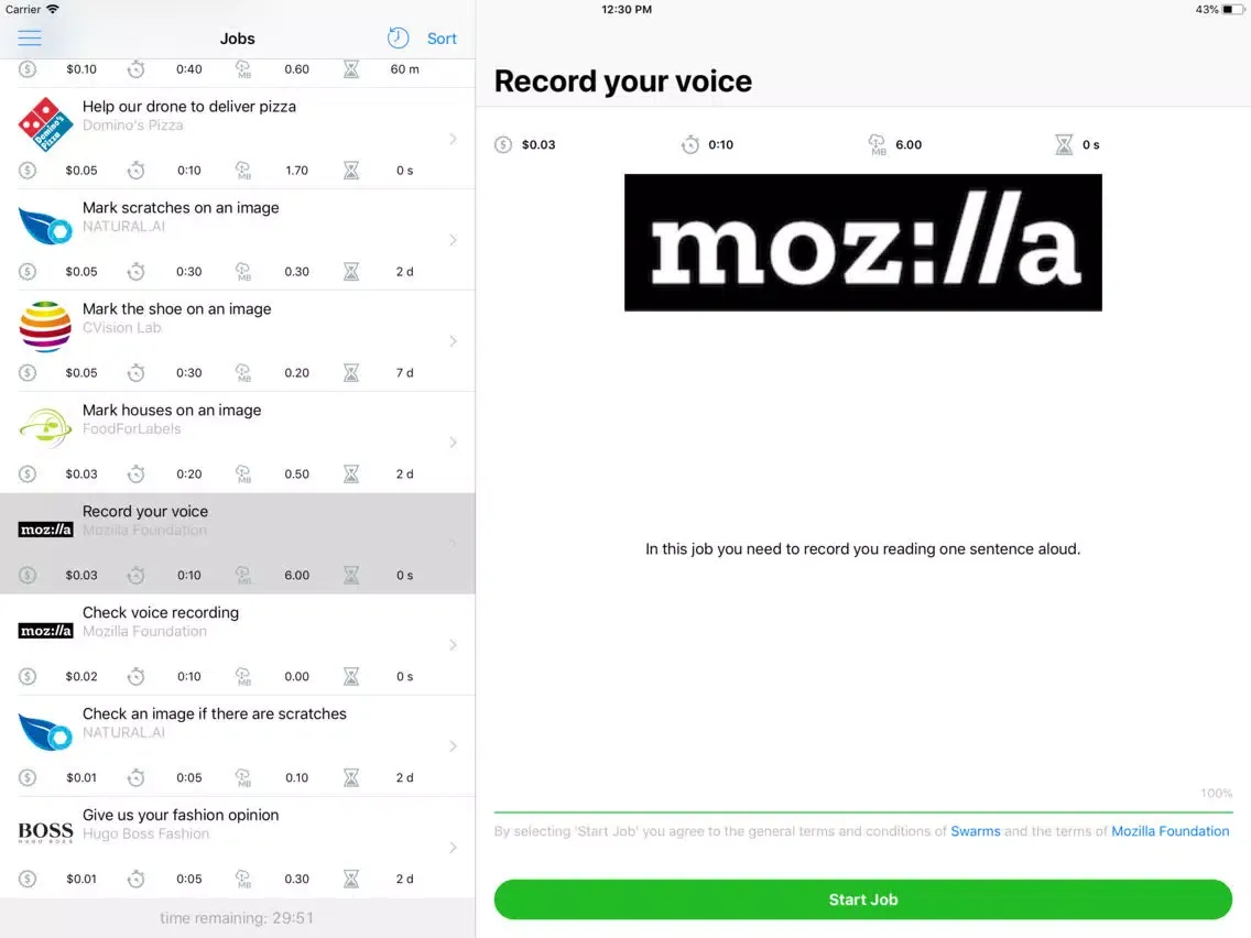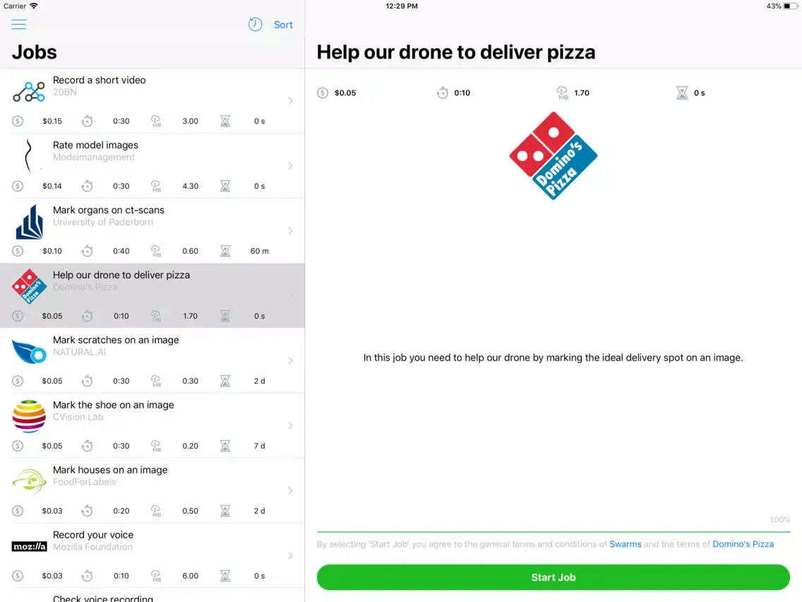 Swarms gives you access to thousands of paid microjobs straight on your phone - anytime and anywhere. Your work helps companies build self-driving cars, detect organs and tumors in ct-scans, to review user-generated content, and much more. You can request a payout to your bank account.