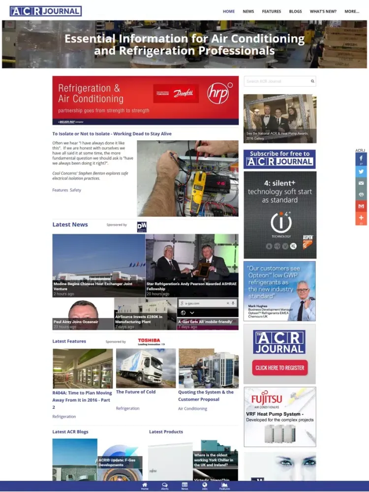Read the ACR Journal to keep up with news, technical articles, jobs and events in the heating ventilation, air conditioning, and refrigeration industry. Download the free app and keep the ACR Journal to hand.