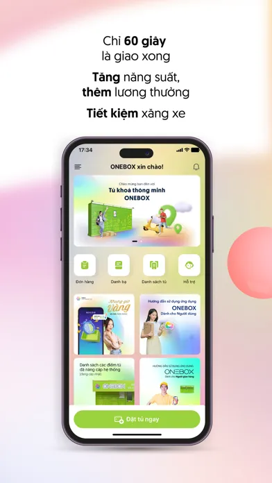 Nhằm đáp ứng nhu cầu ngày một gia tăng của người dùng đối với việc sử dụng dịch vụ Giao - Nhận hàng hóa qua tủ khóa thông minh, ONEBOX đã nghiên cứu và phát triển thành công ứng dụng ONEBOX trên nền tảng di động với nhiều tính năng ưu việt.