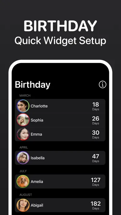 Quick & Simple Birthday Widget Reminder app on your Home Screen.