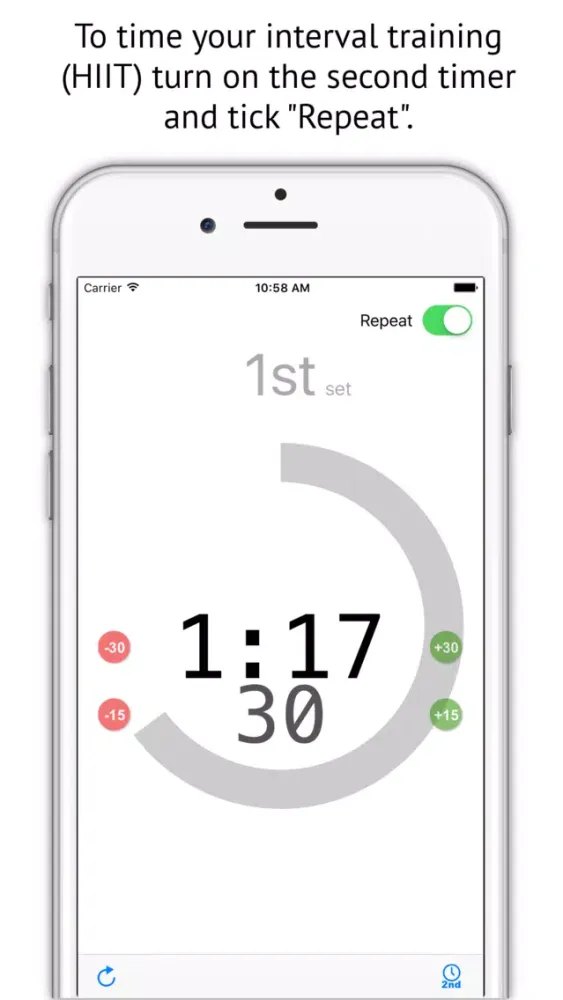 The dual timer feature combined with auto-repeat makes HIIT training simple: set the first timer for your workout time and the second for your rest time. No Touch Timer will alert you when either your workout is complete or your rest is up.