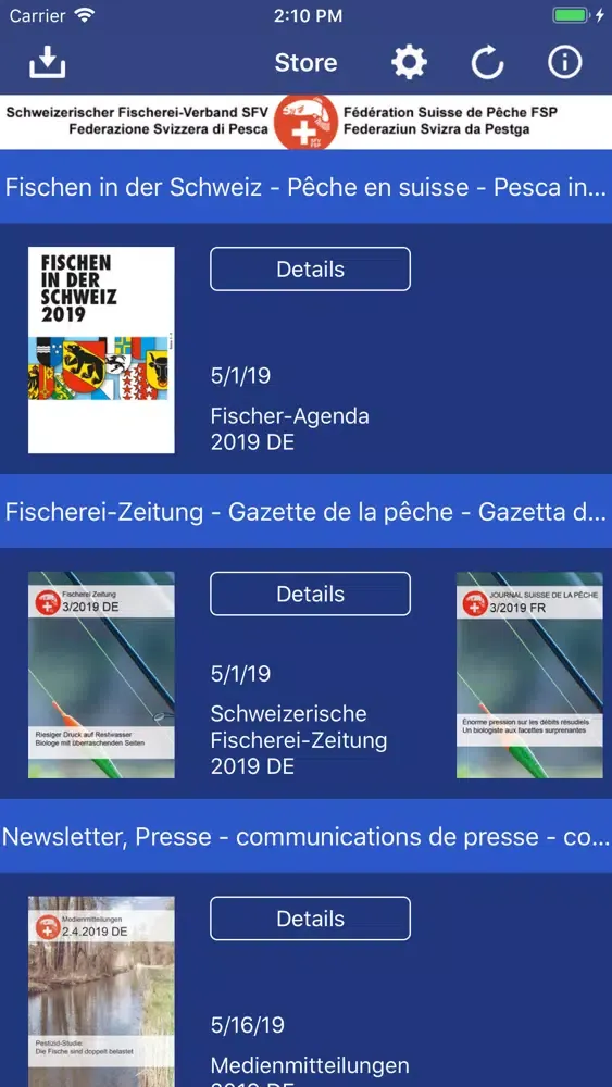 Unsere App ist als Kiosk-System organisiert und bietet kostenlose und kostenpflichtige Informationen wie zum Beispiel Ausbildungsunterlagen an. Im Partnerbereich werden Informationen von Verbänden und Organisationen bereitgestellt, die ähnliche Ziele verfolgen wie der Schweizerischer Fischerei–Verband. Die Informationen werden laufend erweitert.