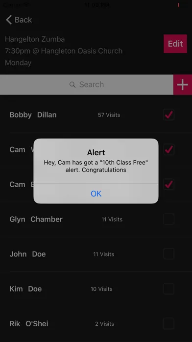 You can also create custom alerts, to be made aware when individuals that attend your class hit specific milestones in their attendance record. for example you can be alerted when an individual has made it to your class the tenth time that month or that year, or the second time that week.