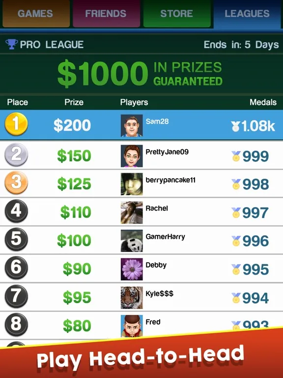 Play head-to-head against players from around the word for fun or real cash money prizes!