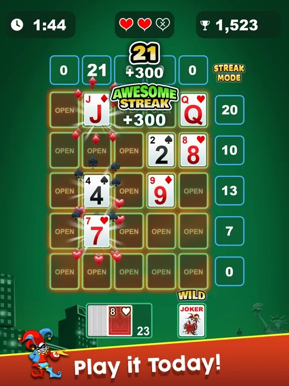 - Score Big! Earn bonus points for streaks, 5 cards, and more!