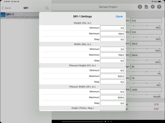 3. You can easily change the minimum and maximum allowable values for all input parameters.