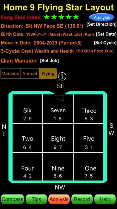 The Feng Shui layout provided by this software is for reference only, the contents and procedures may be inadequate, we do not guarantee the accuracy and reliability of the information provided by this software, and we do not take any responsibility because of the inaccuracies information or any loss or damage caused by the information provided by this software. The public should also understand that the Feng Shui theory is not an accurate science; you are the master of your fate.
