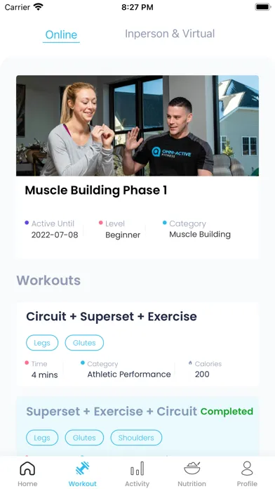 Reimagining mobile fitness, the Omni-Active® Fitness app aims to provide a cutting-edge fitness experience to our clients. Whether you're using the online workouts built by trainers, attending sessions virtually, or training with an Omni-Active® professional in person, we're here to guide you on your fitness journey. Moreover, we have integrated with Apple's Health App (a.k.a Health Kit) in order to display your health data in an orderly manner within our application. Stay in touch with your trainer through our messaging feature, learn and optimize with our daily trivia questions, calculate your nutritional needs with our macro calculator, and earn coins every step of the way - allowing you to be entered to win monthly prizes.