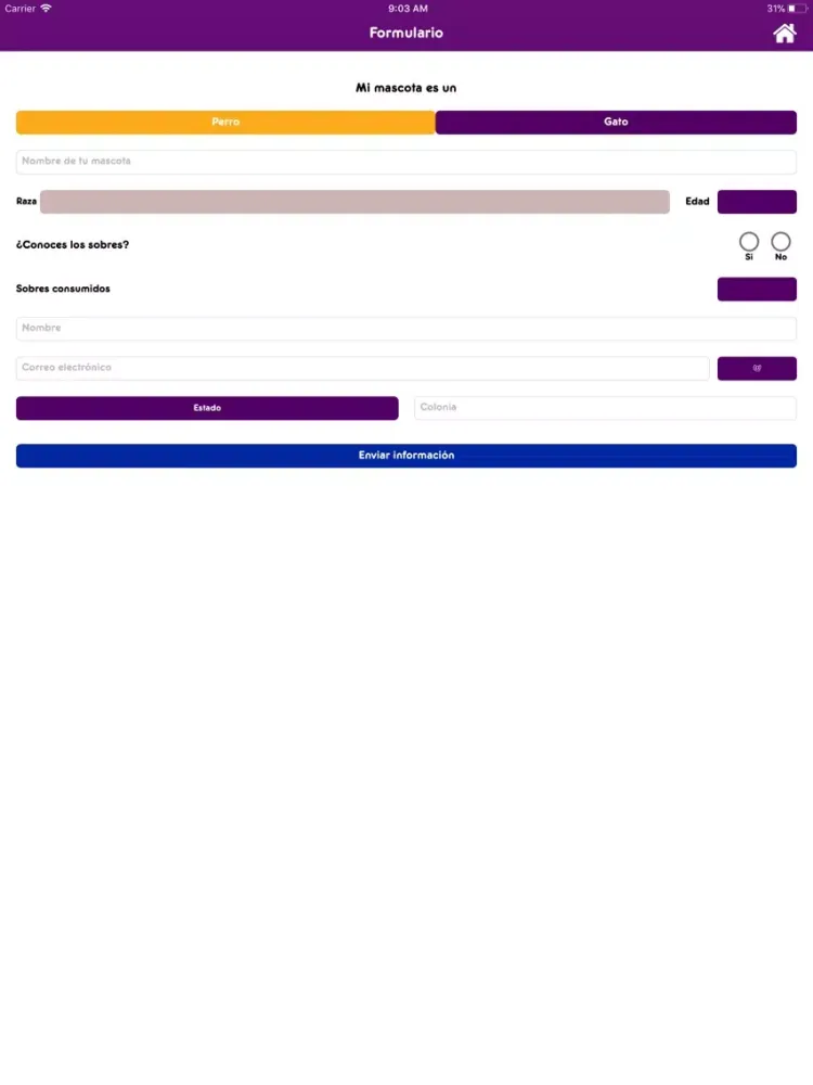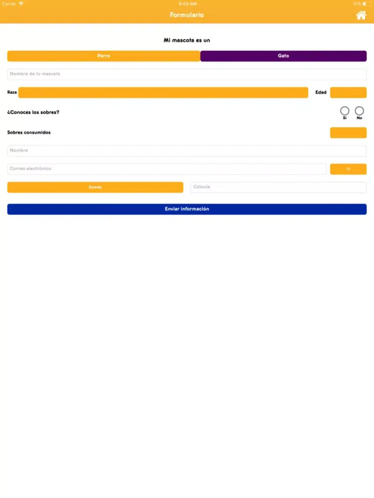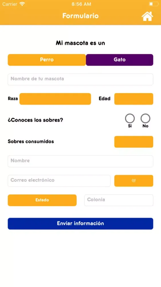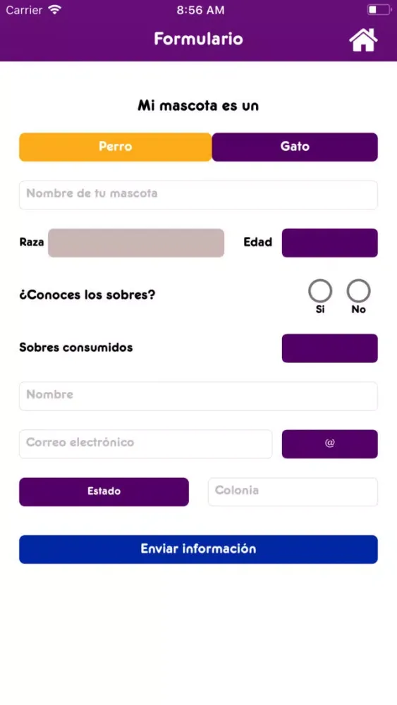 App de MARS Petcare México para captura de datos de dueños de perros y gatos.