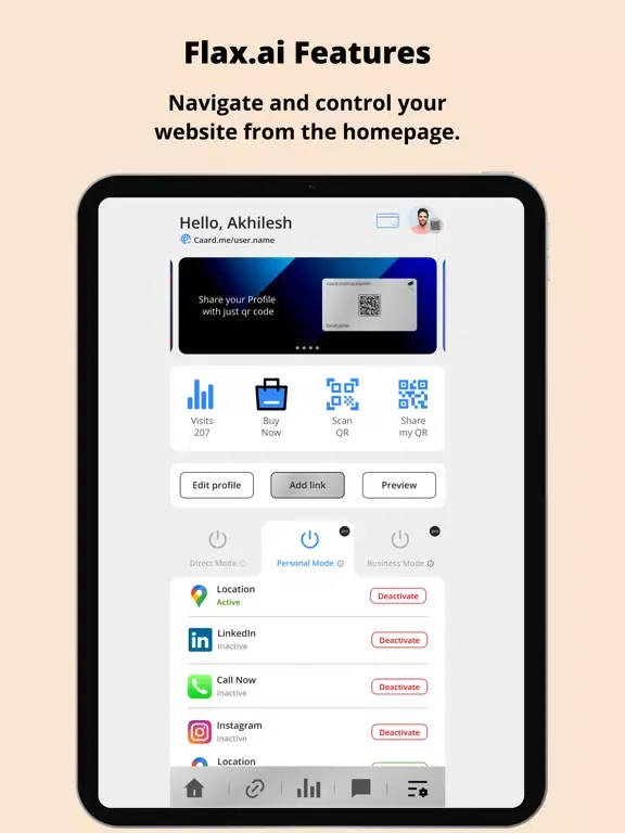 Flax.ai is a cloud-based micro website development platform that allows users to create and customize professional-grade mini-websites without the need for coding skills. Flax offers a wide range of tools and features, including multiple themes, layout customization, free subdomain, and much more. Flax provides hosting and domain services, as well as marketing and Analytics tools to help users promote their websites. It is widely used by individuals, small businesses, and organizations to create mini-websites for a variety of purposes, including Link In Bio, landing page, one pager, portfolios, or simply embed your site to our dynamic QR or RFID based product