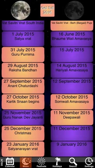 - A list of full moon (purnima) and new moon (amavasaya)
