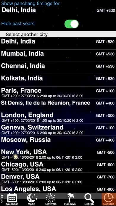 - A list of major cities for which you want to see the detailed panchang. If your city is not in the list, you just select the closest one.