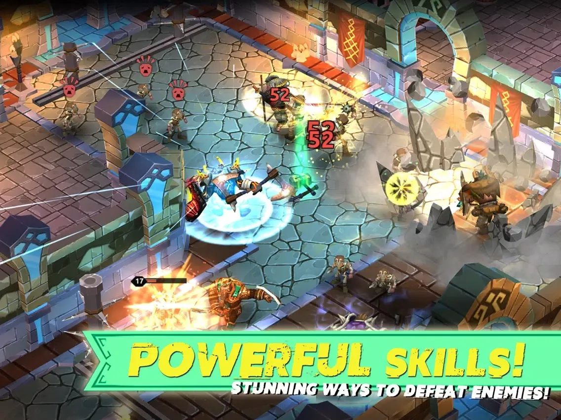 Fight against other players in REAL-TIME in the Arena, and become a legend of the dungeons. Go over the dungeons looking for incredible TREASURES, or ask for help to overcome the challenges of the online CO-OPERATIVE MODE. Join a CLAN and fight to conquer the dungeons.
