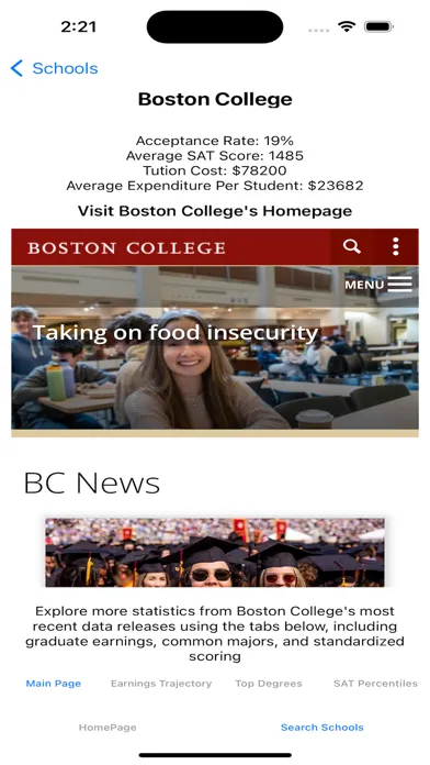The impetus for this application arose from a desire to disentangle the rich yet vast array of U.S. college data collected and dispersed for public use by the Department of Education in their annual dictionary release into an easily digestible set of current trends and individual college pages. In doing so, College Comps clearly displays the latest reliable data on emerging fields of study and median returns on education, as well as ranking top U.S. colleges by acceptance rate, earnings per tuition, standardized scoring threshold, and more metrics. Using the search feature, college applicants and transfer students can easily compare data across U.S. universities, using this information to assist in their search process.
