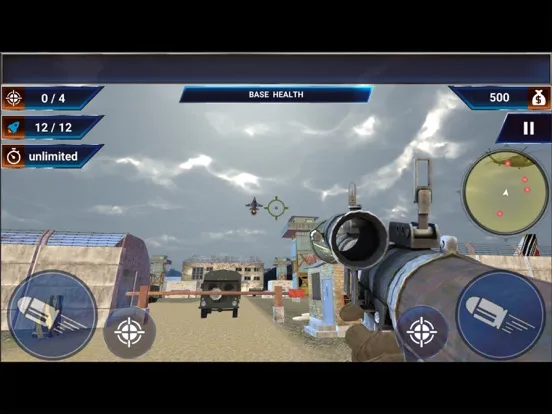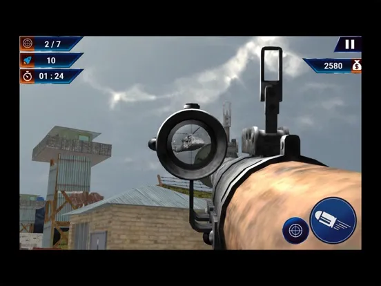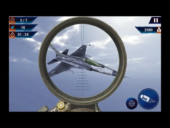 First aim towards enemy fighting airplanes and jets or helicopters by swiping up down or left right on screen and then press aim button to get more clear focused shot through rocket aim sight and then press fire button to launch rocket towards enemy planes.