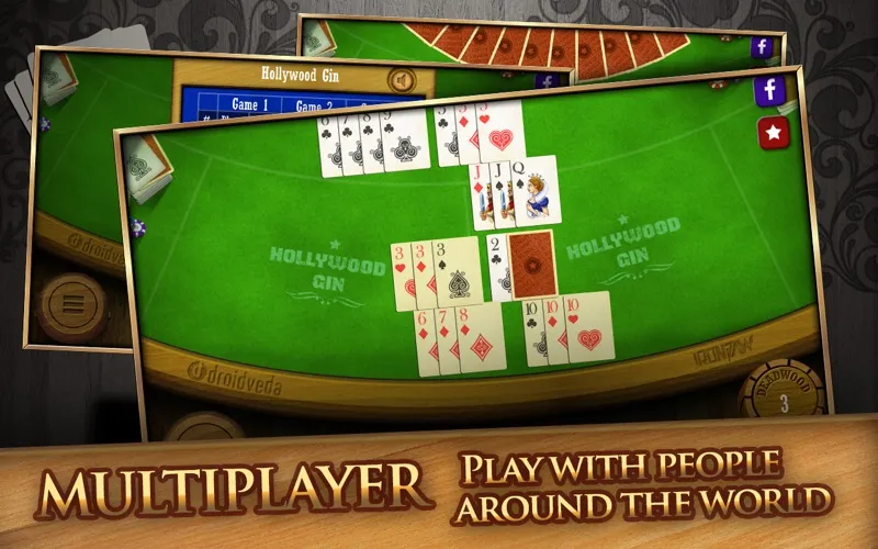 New and experienced players can all enjoy this game by utilizing the three different game type - Straight Gin, Oklahoma Gin, Hollywood Gin.