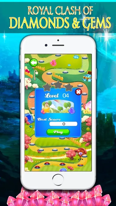 Are you ready for this Royal Clash of Diamonds & Gems puzzle adventure? Use boosters to increase your score to complete all the levels with 3 stars. Pick charms and stars to win pearl's treasures in Royal Clash of Diamonds and Gems game.