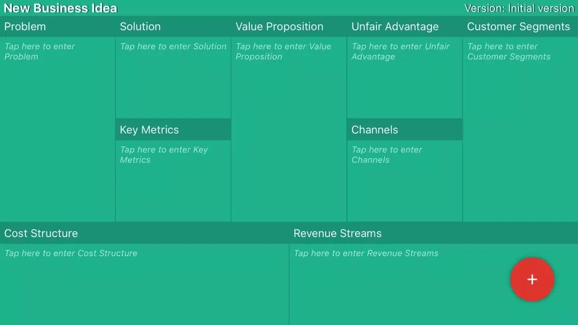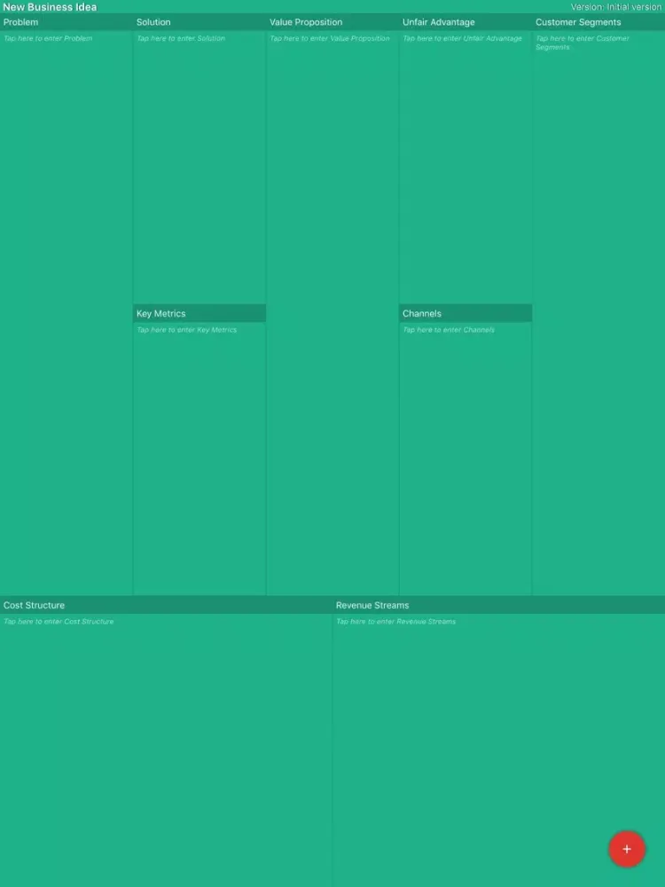 The app allows you to quickly map out business model on a 1 page 'Lean Canvas'