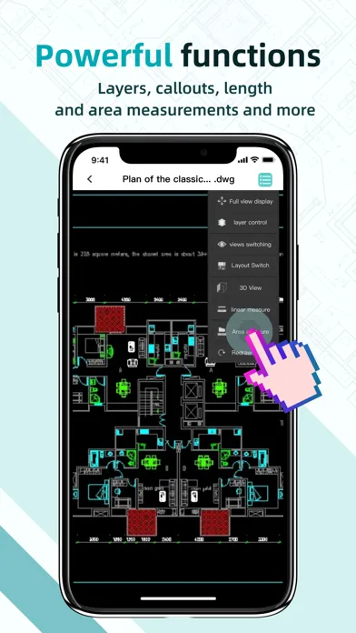 CAD Viewer is an APP for viewing, editing and annotating CAD drawings (DWG, DWF, DXF). The APP provides drawing viewing functions such as panning, zooming, measuring, layer control, etc. At the same time, it provides a variety of drawing entities (single-line, multi-line, circle, text, cloud line) to facilitate drawing changes and electronic review.