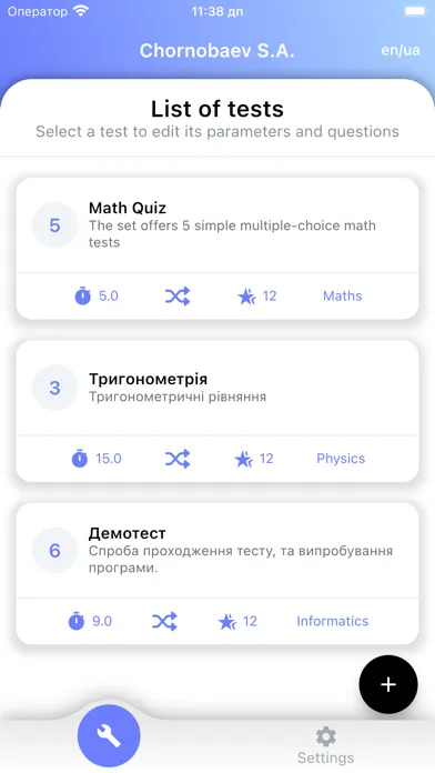 - create, edit and delete a test;