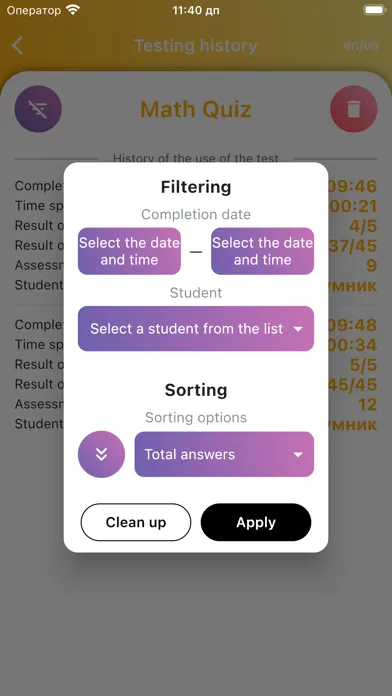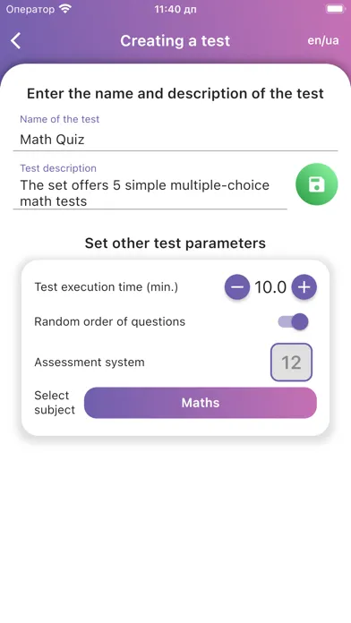 The program for creating and conducting student testing allows you to use two account roles: teacher and student.