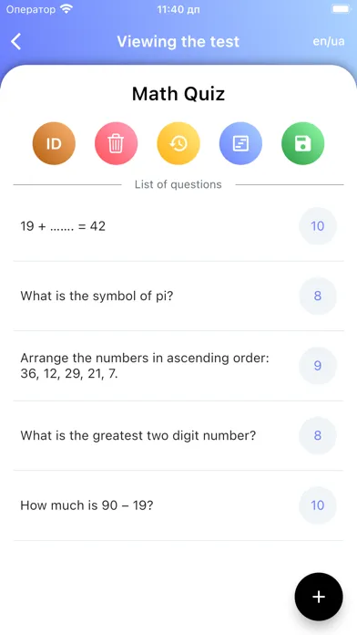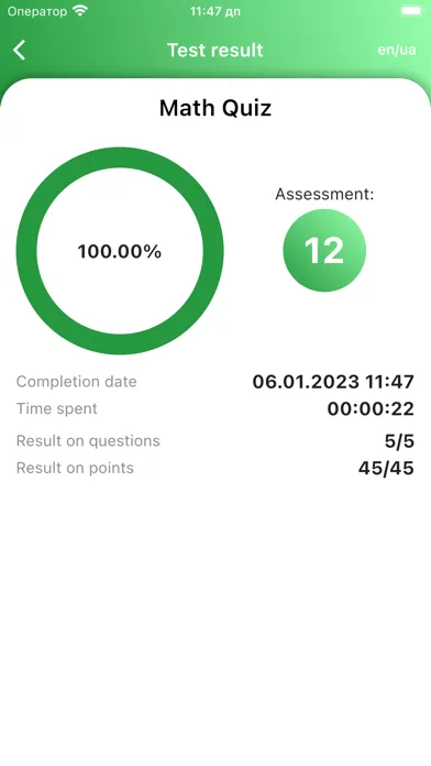 In the settings, you can change the localization of the test, use support, share and rate the program.