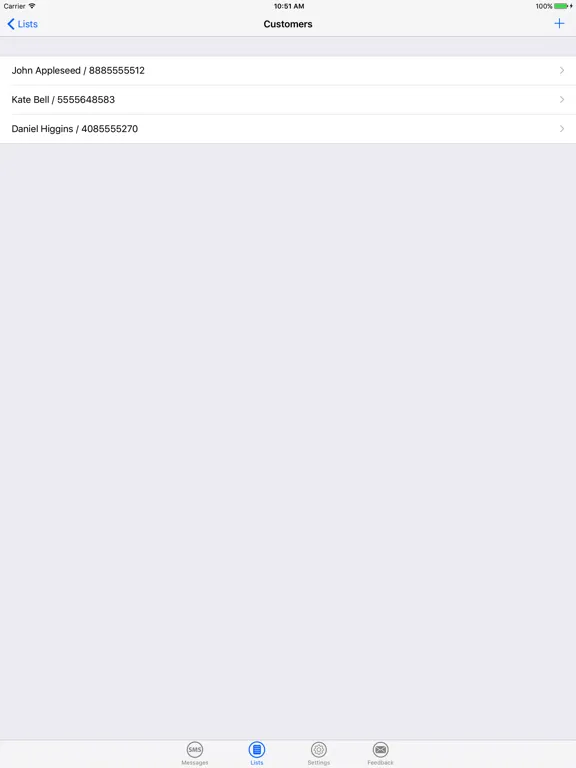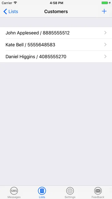 Manage lists by importing contacts from your phone or through a CSV file: (Name,Phone,Birthday) are the only parameters needed, with no header.