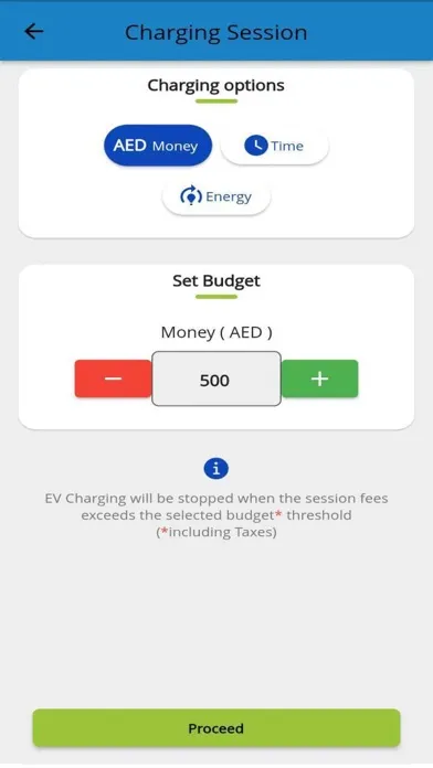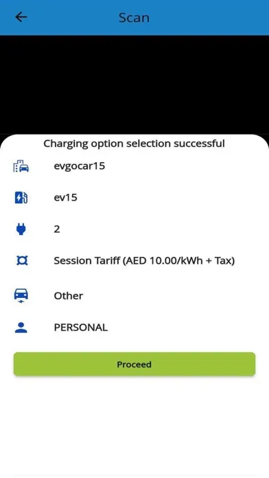 . Simple scan action, select type of charging (Time/Energy) and proceed.