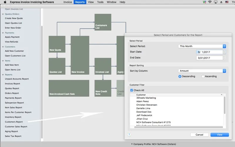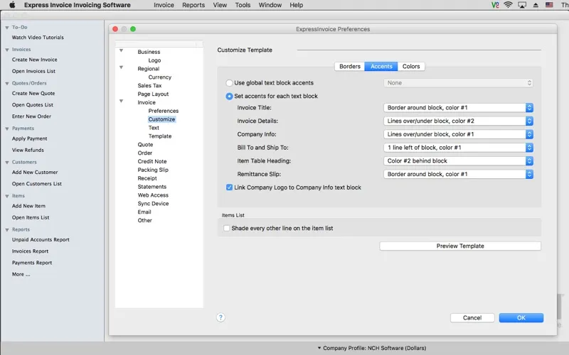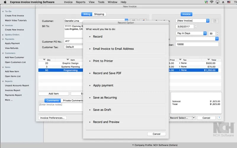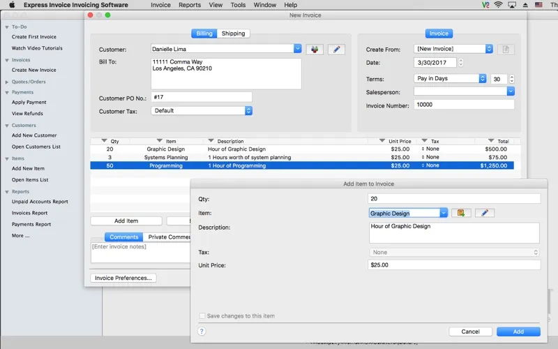 Apply partial or full payments toward recorded invoices when payments are received in Express Invoice. Generate, view, and print reports for unpaid invoices, payments, item sales, accounting and more! Express Invoice helps keep track of customers with up-to-date customer records including contact details, payment history, and sales history.