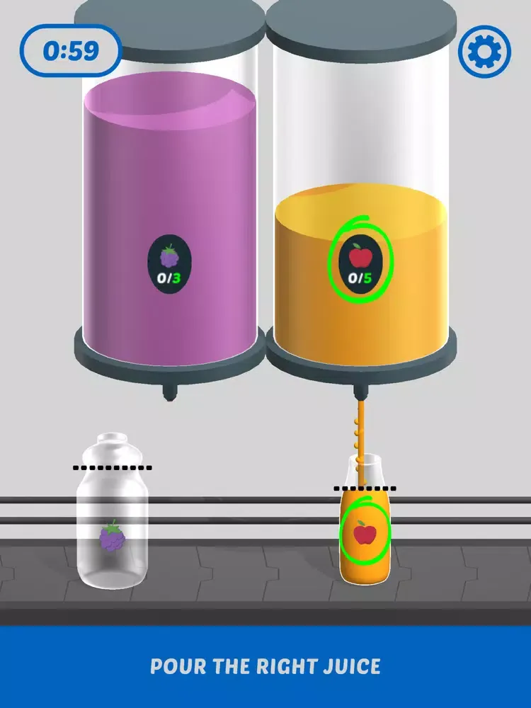 Run the best juice factory in town. Fill the right juice in the right bottle and deliver your orders on time.