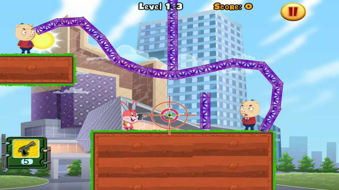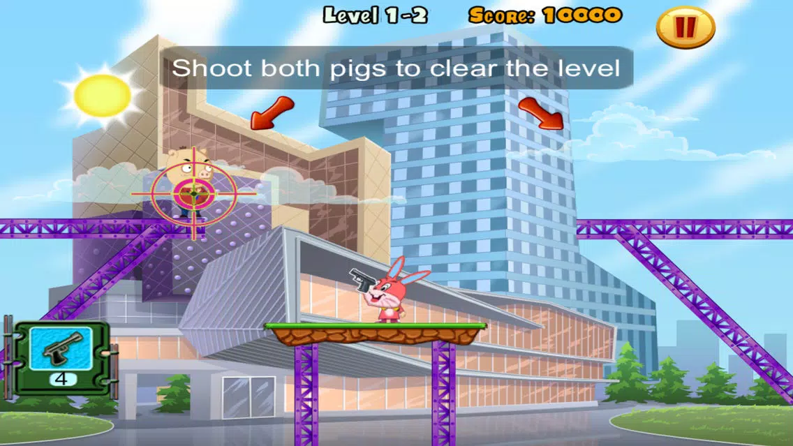 I hope you like pigs and killing them cause this game has a lot of that pig pig squawk piggishness. But never mind, but mind your skills. These pigs are tricky. They hide and dank and camouflage so you can't really shoot them that easily. But that's where your creativity comes out. So I need to worn you. The game is crazy hard, but don't get to carried away, if you can't figure out one of the 200 levels. Don't refuse to eat or skip your breakfast or any crazy thing like that. Don't get your mama upset. I have taken care of a situation of that kind by providing you with a cheat sheet for every level. So DOWN THIS GAME NOW! Play till your fingers hurt and you your eyes are hanging on a hanger. But most of all have a lot of fun!