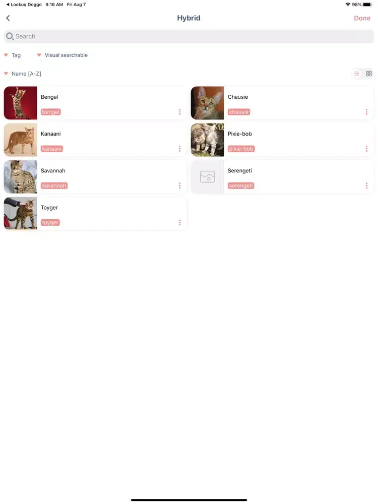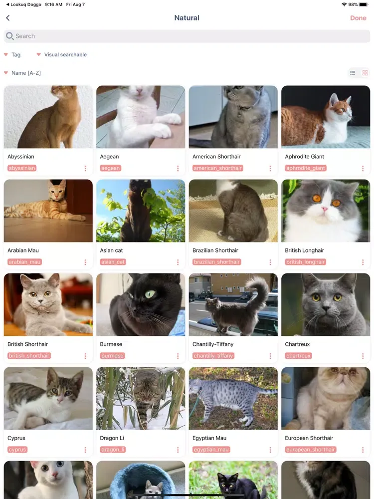 Just take a picture with LOOKUQ KITTY, and see all information about the cat in a few seconds. You can get cat name, features and lovely photos,... Fast and useful for cat lovers.