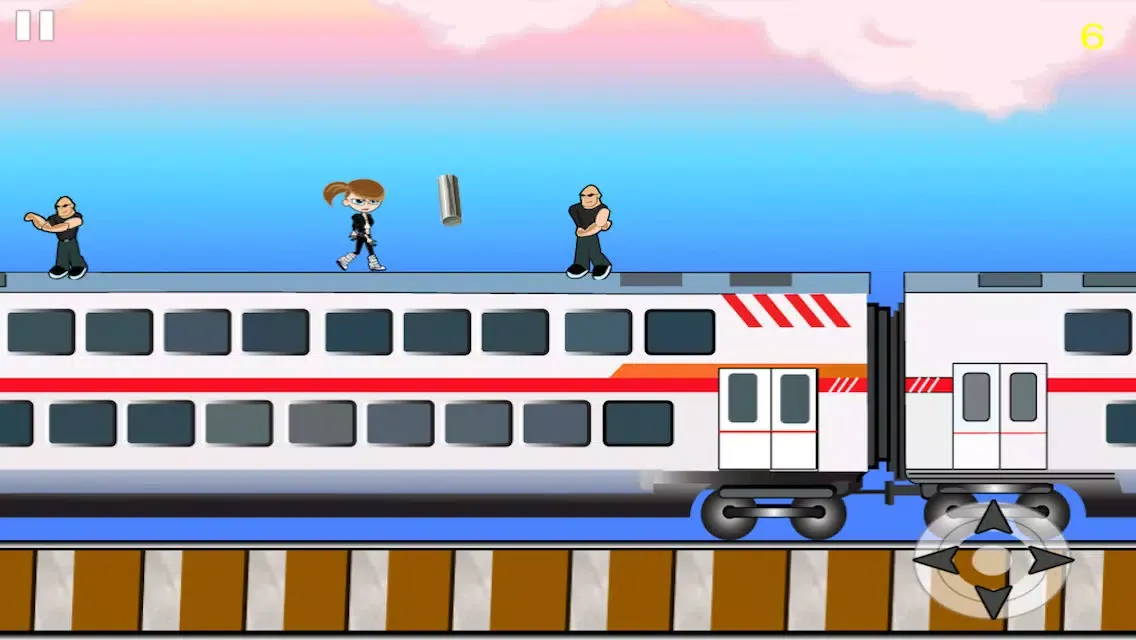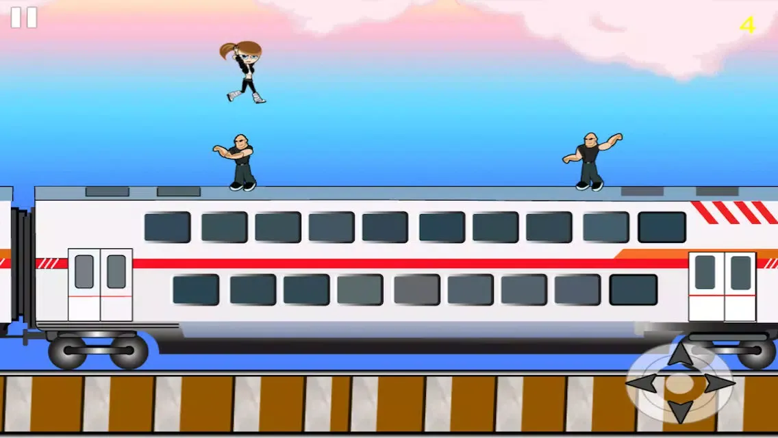 You are Agent Blonde, and you are the best of the best—the secret agent who can accomplish any mission. Today, your mission is to hop on the train and fight and win against the numerous agents of chaos. Jump at crucial moments and use your weapons to beat your enemies.