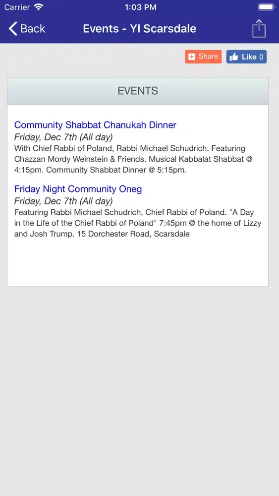 Young Israel of Scarsdale app keeps you up-to-date with the latest news, events, minyanim and happenings at the synagogue. It also gives you the localized zmanim for the shul's location and the users current location.