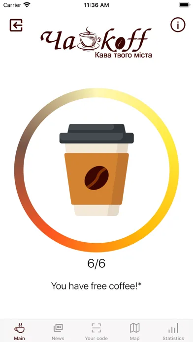 3) after buying 6 cups of coffee, you will automatically be accrued by a free cup of coffee, which you can pick up at any time and at any of the points of the Chaikoff coffee shops.