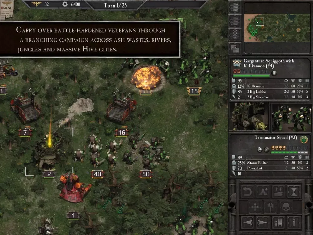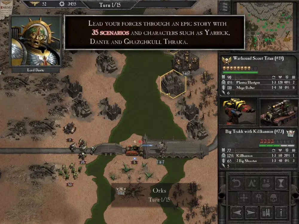 In this hex-based, turn-based strategy game, players will lead the Imperial forces of the Armageddon Steel Legion and Space Marines from a variety of Chapters against the Ork invasion through over 30 scenarios, on the hostile terrain of the planet and its gigantic Hive Cities.