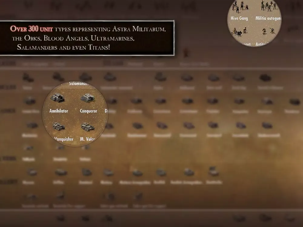 • 300+ unit types representing Armageddon Steel Legion, the Orks, Blood Angels, Ultramarines and Salamanders Space Marine chapters and even Titans!