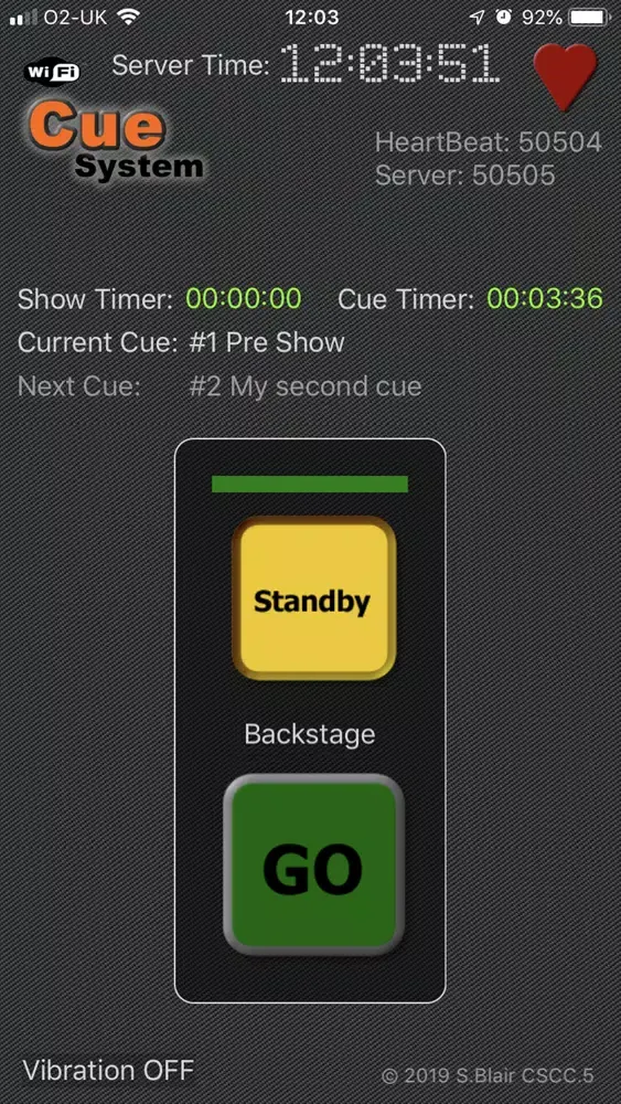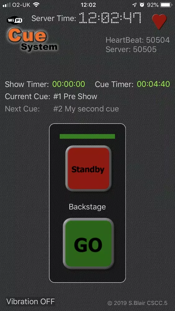Remote client unit for Cue system console allowing you to control a show or production over a local Wi-Fi network, freeing you from the restrictions of a traditional wired cue system.