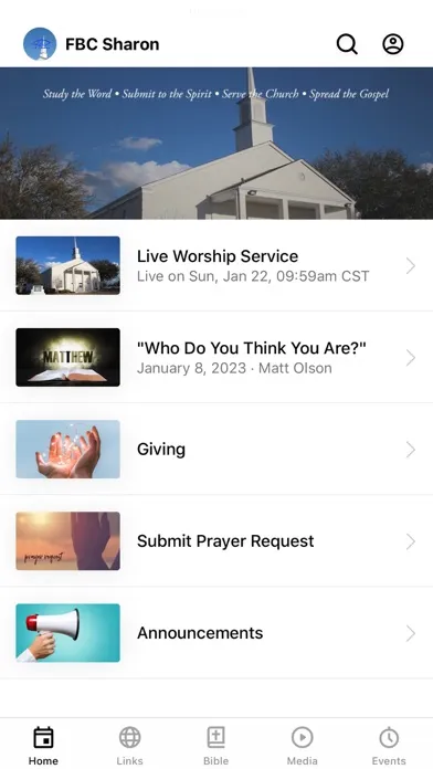 Use of this app will help you stay connected to us and the Word of God in several ways. God's Word is built into the app with a tab that links you to the Bible. Sunday worship services can be viewed live as well as an option to watch previous services. Links to our website and Facebook page are also to be found. Enabling push notifications will allow us to keep you up to date on church functions.