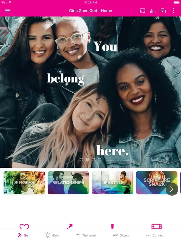 Connecting and engaging with the Girls Gone God app allows you to be able to view upcoming events, give, read the bible, and more! Daily scripture snacks, bible plans, and devos are designed to help you navigate your everyday fulfillment of your walk in faith. Whether you are single, married, male or female. This app can get you through your journey. Explore the shop to obtain additional books and other media related products for you or to help someone else.