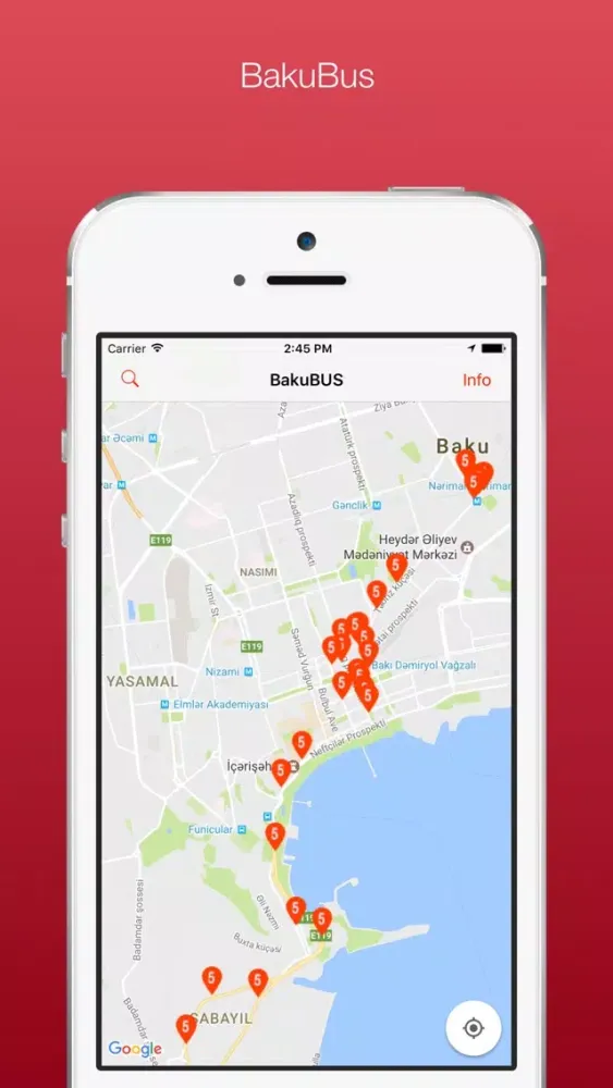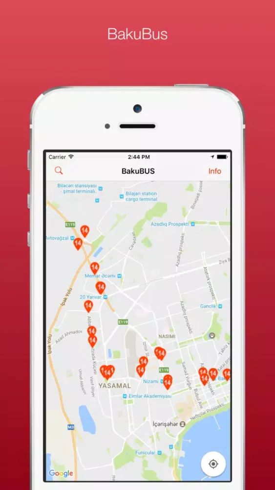 BakuBus nəqliyyat şəbəkəsinə aid avtobusların hərəkətinin onlayn izlənməsi üçün mobil tətbiq.