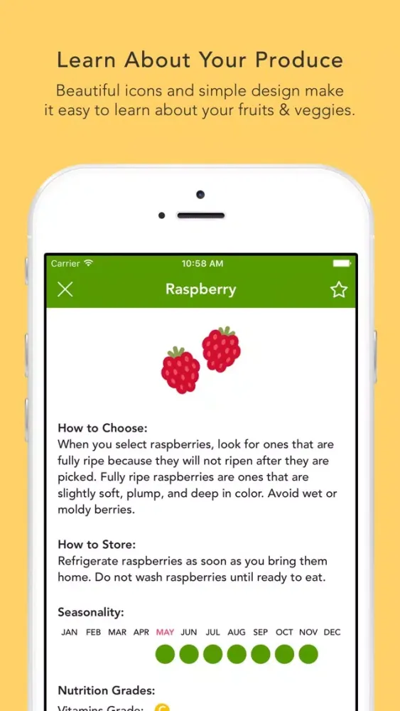 With over 90 fruits & veggies, Veggie Base even gives you detailed information on nutrition as well as tips on how to pick and store your produce.