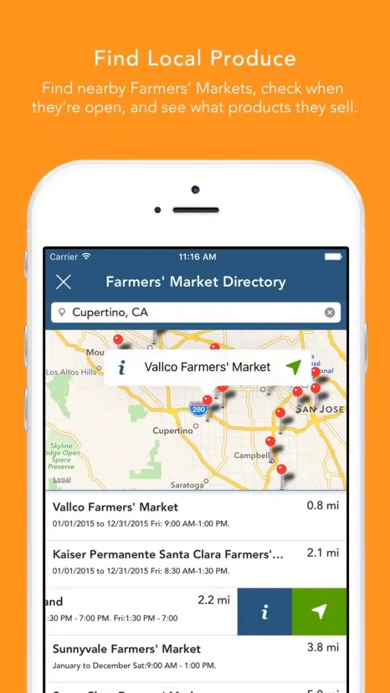 - ALL NEW: Search for nearby Farmers' Markets and see their hours & products offered!