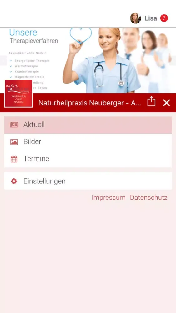 In der App erhalten Sie unter Aktuell die neuesten Informationen und rund um die Naturheilpraxis Neuberger. Von Termininfos über Zitate bis hin zu Rezeptideen und Gesundheitstipps im Alltag. In den Bildergalerie erhalten Sie einen Einblick in unsere Therapiemethoden und Sie haben über das InterCom die Möglichkeit und direkt eine Nachricht zukommen zu lassen, falls Fragen oder Anregungen offen sind.