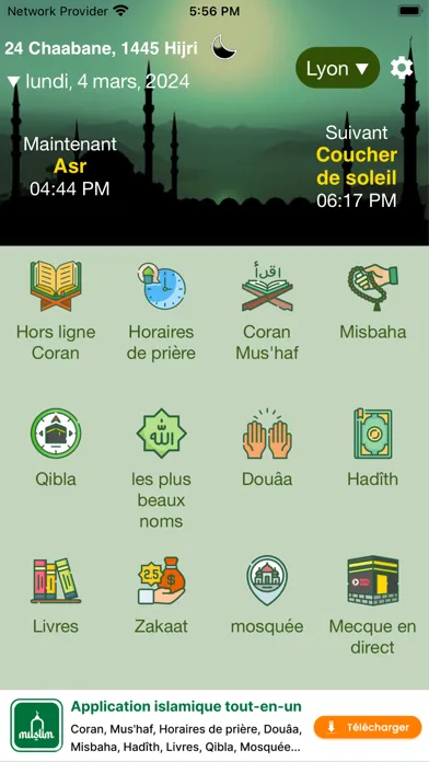 • Qibla Finder: Animated Qibla compass to show you the direction to Makkah.