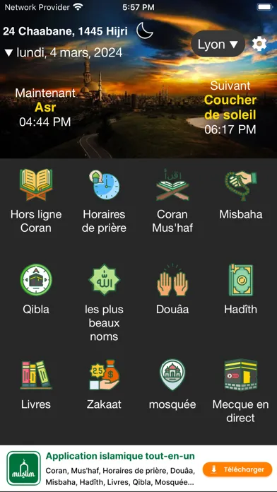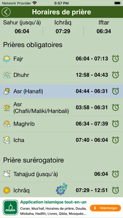 - Shows Muslim Prayer Times: Tahajjud, Fajr, Sunrise, Dhuhr, Asr, Sunset, Maghrib, Isha, Ishraq, Duha (Chast), Iftar and Sahri.